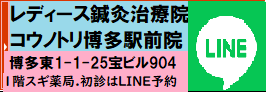 博多駅前院は不妊専門病院からの紹介以外は、患者様多数で予約停止中です。ご迷惑をかけております。佐賀市や久留米市、柳川市、大川市など南福岡や大牟田市など北熊本からの不妊鍼灸の希望が多い為、柳川大川院を開院致します。LINEから予約下さい